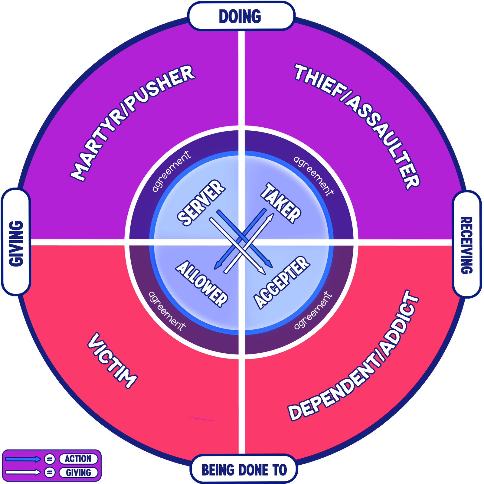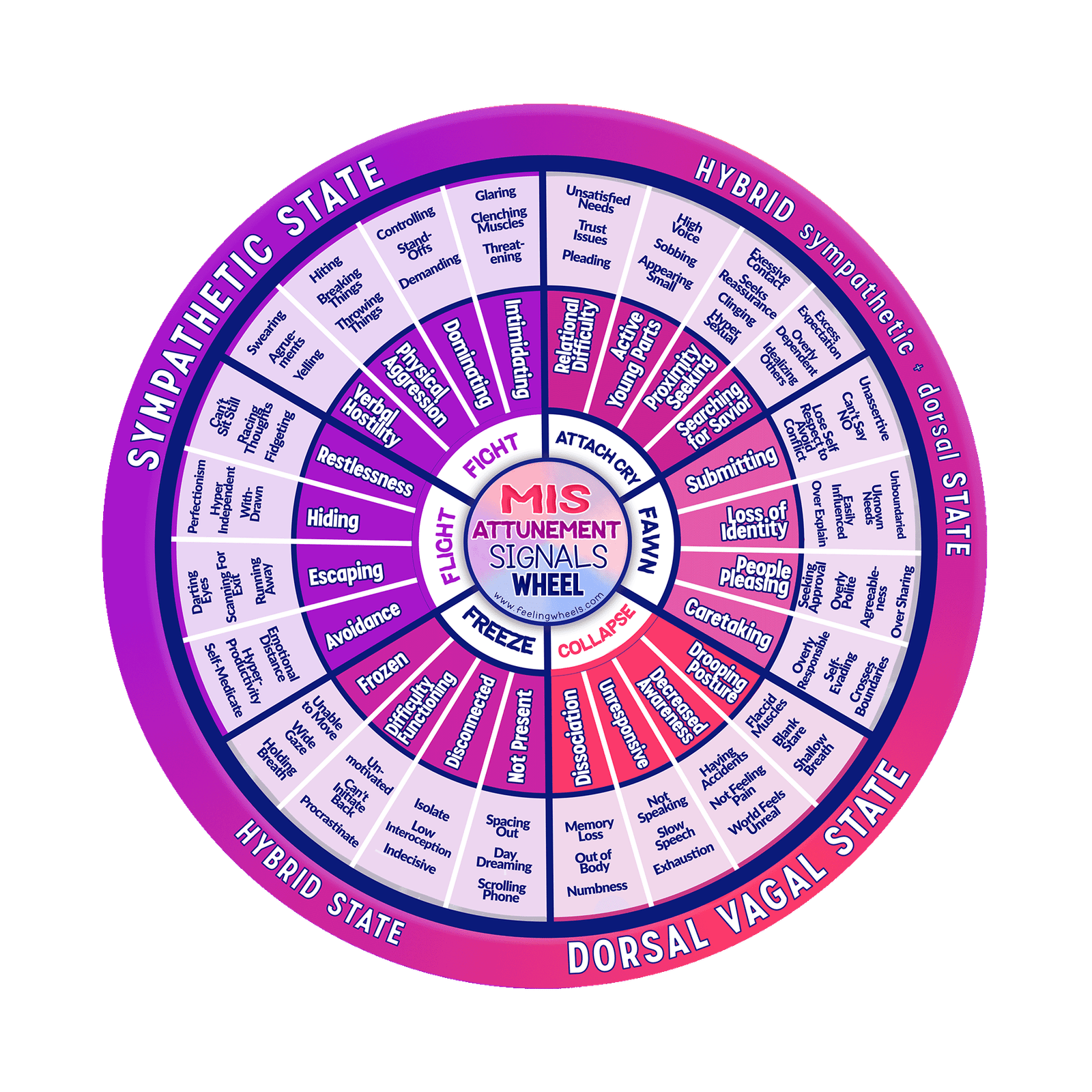 - It looks like the 6 trauma responses (fight, flight, fawn, collapse, attach cry and freeze)